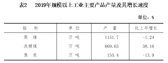 規模以上工業企業原煤產量1151.7萬噸,下降1.24%;洗精煤669.63萬噸,增長38.16%;焦炭155.4萬噸,下降13.9%。